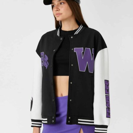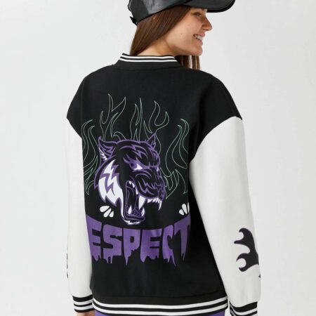 Oversize Bomber College Jacket Printed Fleece Inside WomanOversize Bomber College Jacket Printed Fleece Inside Woman